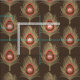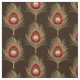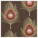 Tela en una impresión de la materia textil de la pluma del pavo real, ejecutada en el ilustrador de Adobe un Photoshop - beige/el moreno calientes empluma, con un ojo en sombras de marrón, de beige, el coral y el melocotón, en un fondo marrón oscuro