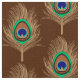 Tela en una impresión de la materia textil de la pluma del pavo real, ejecutada en el ilustrador de Adobe un Photoshop - el moreno del camello empluma, con un ojo en sombras del chocolate, del caramelo, del verde de jade, y del azul de cobalto, en un fondo marrón rico