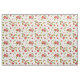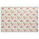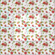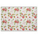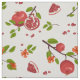 La tela está formada por granadas rojas, flores y hojas verdes sobre un fondo blanco.