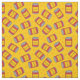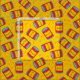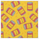 Tela divertida amarilla con estampado de latas rojas de judías al horno