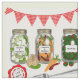 Una divertida novedad de tela con un diseño de estilo vintage que representa la primera jarra de cebollas encurtidas caseras, pimientos, guerkins, aceitunas y zanahorias en los ventanales cuadrados decorados con banderas de mostrador rústico rojo y blanco. Un diseño de tela muy lindo y hogareño adecuado para muchos proyectos artesanales y de costura.