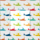 Ideal para regalos y mantas para niños, este patrón presenta colores clásicos audaces como aviones militares rojos, azules, verdes, amarillos y naranjas Osprey en una vista lateral con sus rotores inclinados en tres posiciones diferentes sobre un fondo blanco.