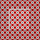 Puntos retros con una frontera que pone en contraste, sobre la base de una obra clásica, modelo moderno de la tapicería de los mediados de siglo - gris de plata/puntos grises confinados en blanco en un fondo profundo del rojo del lápiz labial