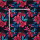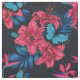 Ramo de flores tropicales, hojas de palma y mariposas dibujado a mano