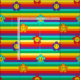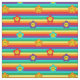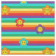 Vibrantes colores arcoiris tejido rayado con bonitas flores de margarita con caras sonrientes