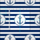 Diseño náutico clásico: ancla en rayas del blanco de los azules marinos. Diseño decorativo y de moda.