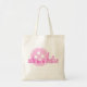 Esta bolsa de lona tiene un diseño de botón rosa con las palabras 'lindo como botón'.