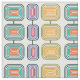 Esta tela tiene un diseño moderno de mediados de siglo de rectángulos concéntricos en colores retro.