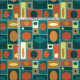 Este patrón abstracto de inspiración retro tiene un fondo turquesa y varios tamaños de rectángulos en amarillo y naranja.