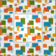 Este tejido presenta un diseño moderno de rectángulos y líneas de los colores de los años 70.