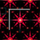 Este diseño de tela colorida presenta un patrón abstracto geométrico de una gran estrella roja que se repite, rodeada de estrellas rojas brillantes, todas con centros amarillos, sobre un fondo negro puro. Cambie fácilmente el color de fondo personalizando para que se adapte a su proyecto especial.