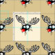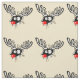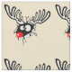 Un ilustracion peculiar de un reno negro y blanco navidad, con una nariz roja brillante. Rompiendo su camino a través de un papel envolvente, luciendo loco y desconcertado. Agradable y gracioso.