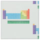 La tela de la tabla periódica tiene un diseño repetido el ofrecer de la tabla periódica de los elementos, con cada grupo del elemento marcado en colores del arco iris.
