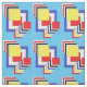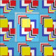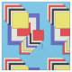 Esta obra de arte geométrica abstracta de Richard H. Fay presenta un conjunto de cuadrados en los colores primarios del rojo, el azul y el amarillo, así como el negro y el blanco.