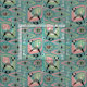 Mi ilustracion vectorial original de gatos abstractos, cubos, starburst, boomerang, lozenges, y más, en rosa, verde, mocha, bronceado y negro en azul.