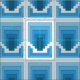 Rectángulos y formas rectangulares en diversos tonos azules forman la base de este arte abstracto/geométrico original de Richard H. Fay.