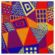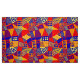 Un patrón abstracto original compuesto de triángulos y rectángulos decorados de distintas formas que se asemejan a edificios y casas
