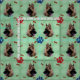 Un retrato alemán de perro pastor contra un fondo azul-verde con una dispersión de huesos y huellas de pata. Este diseño está diseñado para baldosas sin fisuras.