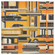 Tela Retro Cars Mostaza Geométrica Mid Century
