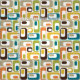 Tela Retro Ovala mostaza blanca naranja verde azulado m