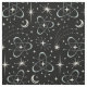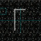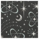 Mi ilustracion vectorial original de un campo estelar retro, atómico, inspirado en los años cincuenta, en blanco roto y azul pálido, sobre un fondo negro.