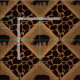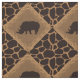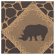Los cuadrados de alternancia fijaron en una diagonal de un sistema marrón profundo de la silueta del rinoceronte en una falsa forma herbosa marrón media del diamante de la textura confinada en el modelo de cuchillas de la hierba altas. Modelo de alternancia con un marrón del oscuro-chocolate (casi negro) y fondo del estampado de animales de la jirafa del moreno.