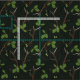 Hormigas de ciervo pintadas, hojas de roble y bellotas sobre un fondo de textura verde muy oscuro.