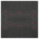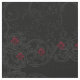 Un damasco de vid inspirado en la cosecha de bonito con marco de rosa roja recibe una actualización moderna del Gótico con una huella gris sombreada en un fondo negro. Todos los elementos están impresos en nuestros productos de alta calidad, no incluyen oro real, joyas, bordados u otros elementos texturales. Todos los diseños son derechos reservados de Tabitha Jones.
