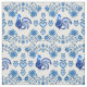 Tela Rooster folclórico/azul calcáreo, corazones/4"