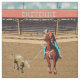 Tela Roping Roping del buey del equipo del vaquero del rodeo de Cheyenne. Arena del rodeo con el texto de Cheyenne en el tejado y un cordelero del equipo. Observe por favor que este diseño tiene una mirada texturizada (véase el cierre para arriba) que éste es parte de una colección con diversos acontecimientos del rodeo con este mismo fondo de la arena del rodeo.