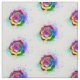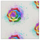 Rosa grande y floreciente con pétalos de arco iris sobre fondo blanco, pintado con salpicaduras de pintura colorida y brillante. 3.ª
