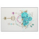 Tela Rosas turquesas con llaves