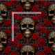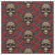 Los cráneos decorados están rodeados de rosas rojas y follaje negro sobre esta preciosa tela de Gótico. Perfecto para ropa y colchas.