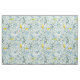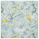 Una tela de bonito para la primavera con aletas de azafrán y guirnaldas en un árbol frutal floreciente en primavera con un cielo gris tormentoso en el fondo ilustrado con tinta azul y acuarela. Ideal para la decoración casera, la artesanía, el edredón y mucho más.
