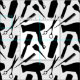Tejidos divertidos de color blanco y negro con las formas de corte de silueta de diversas herramientas del mercado, herramientas y herramientas estilistas como secador de pelo, tijeras, peine, cepillo, cepillo de aplicación y frasco de spray. Añada estilo a su vida diaria de trabajo en pequeñas empresas con este divertido diseño de peluquería para crear sus artículos de salón como gorras, máscaras u otros artículos de personalizado.