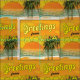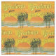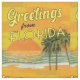 Saludos desde Florida en el estilo de las vintage postales Saludos con un ilustracion de puesta de sol sobre la playa con palmeras. Colores y fuentes retro vividos nos llevan de vuelta a la vieja Florida. ¡Diversión por la decoración de las casas de playa!