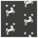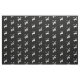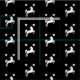 "Sable, un caballo de riña regular sobresaliente entre en jefe dos mulas argentes." Patrón de alamante de una insignia popular para el Reino de los Médicos en la Sociedad para el Anacronismo Creativo.