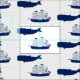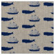 Diseño náutico de nave y de ballena jorobada del schooner en azules marinos.