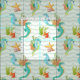 Coloridas escenas submarinas del océano con fantásticos caballitos de mar, estrellas de mar, arena y peces tropicales entre las algas y los corales.