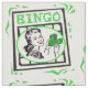 Este diseño tiene una tarjeta inclinada del bingo con una inserción de una mujer que sostiene el dinero.