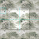 Un cuadro de arte japonés que se repite con una mezcla de crema clara y verde suave, con reflejos acuáticos para espacios como spas, estudios de yoga, salas de meditación o para invitaciones caseras personalizadas.