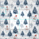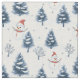 Un lindo hombre de nieve y árboles nevados tela Navidades con hombres de nieve usando sombreros de Santa María y abetos cubiertos de nieve con un fondo blanco nevado. Un bonito diseño para la decoración de tu casa o para los proyectos de artesanía y edredón para la temporada de vacaciones.