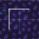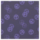 Tela morada oscura con un patrón aleatorio de signos de paz.