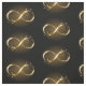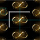 Oro, símbolo de infinito de joyas con estrellas doradas sobre fondo negro. Diseño con estrella dorada.