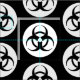 Modelo del símbolo amonestador del Biohazard en blanco y negro.