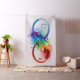 Símbolo de infinito dibujado artísticamente con una hermosa pluma arco iris sobre fondo blanco. Estilo tatuaje.