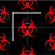 Modelo del símbolo amonestador del Biohazard en rojo y negro.