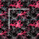 Tejidos de camuflaje alegres y frescos en campos de rosa, carbón vegetal y negro y un patrón de contorno de cráneo en blanco.