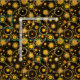 Un aerosol hermoso de las formas del sol del oro, con las ruedas o los engranajes de mecánicos celestiales y del stardust en espacio profundo se ennegrece.