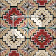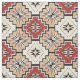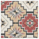 Borgoña, moreno, blanco y negro, este diseño al sudoeste del estilo tiene una simetría reflejada y un diseño geométrico complejo similares a las mantas al sudoeste tradicionales.